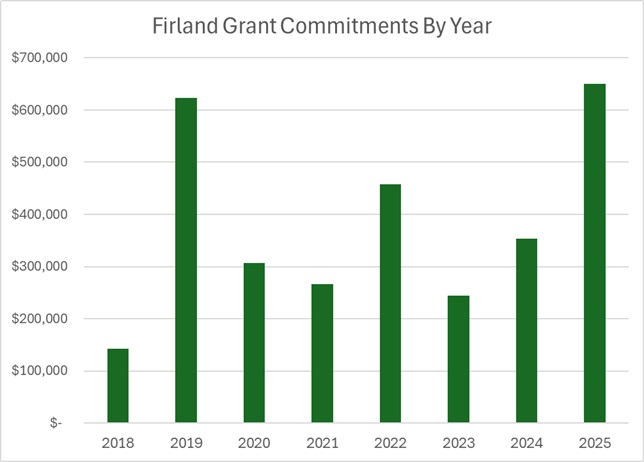 Firland has donated millions of dollars of grant money over the past 75 years to the cause of fighting tuberculosis (TB). These donations continue to be the primary way we carry out our mission to eradicate TB. Here is a chart that shows Firland grant commitments in recent years: